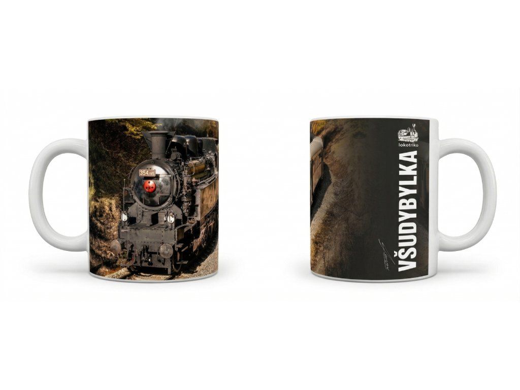 Vychutnejte si kávu či čaj s legendární parní kráskou Všudybylka 354.195. Bílý porcelánový hrnek s celoplošným sublimačním potiskem po vnějším obvodu potěší každého milovníka železnice i poctivého designu – doma, v kanceláři i na cestách.