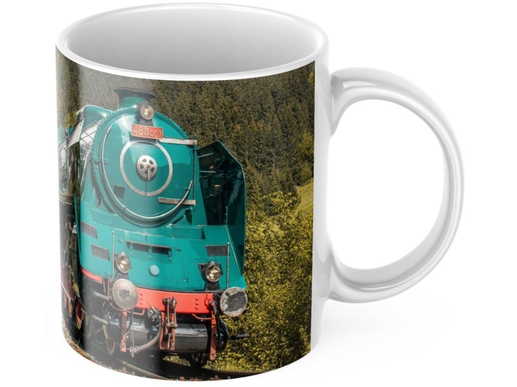 Bílý porcelánový hrnek se sublimačním potiskem po celém obvodu s motivem ikonické parní lokomotivy 486.007. Stylový společník pro každodenní kávu, čaj i kakao, který potěší železniční nadšence, sběratele i všechny, kdo ocení originální design.